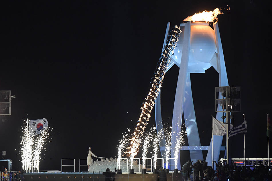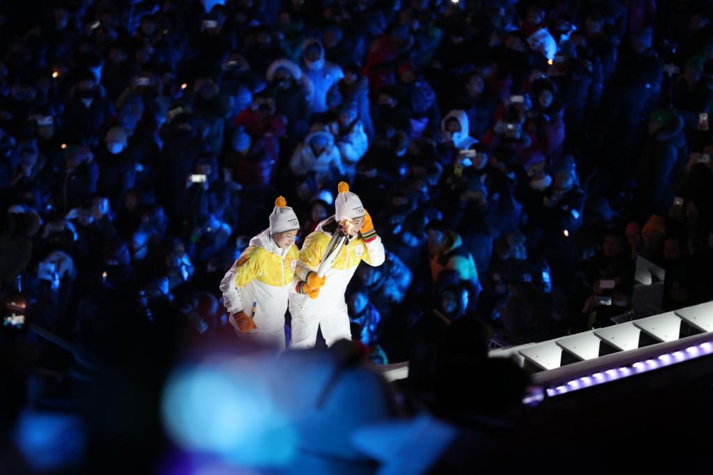 最终主火炬由球星普拉蒂尼和一名孩童共同点燃
