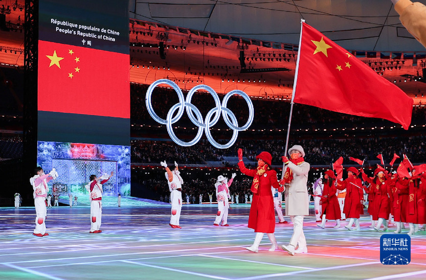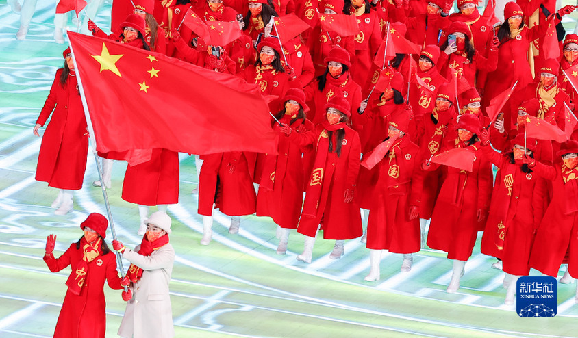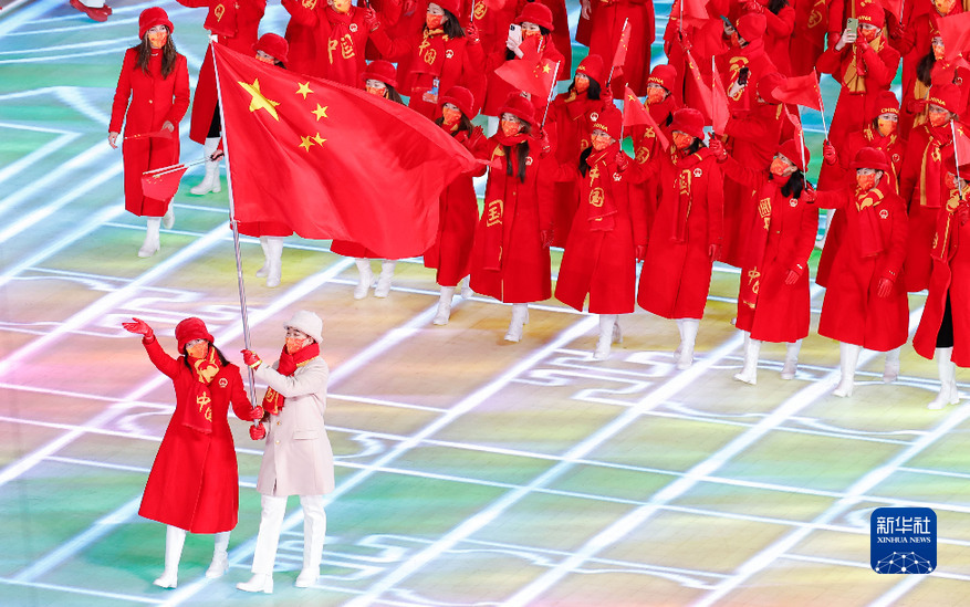 这是中国代表团在开幕式上入场。新华社记者 曹灿 摄