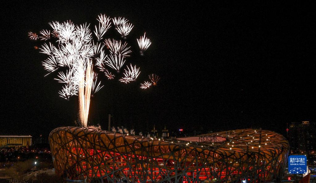 2月4日晚,第二十四届冬季奥林匹克运动会开幕式在北京国家体育场举行。这是焰火表演。