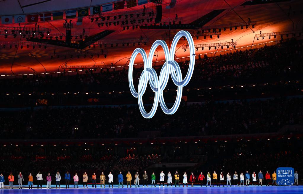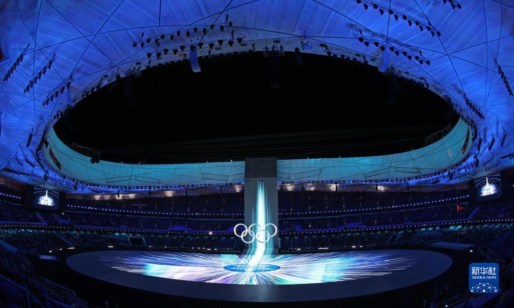 2月4日晚,第二十四届冬季奥林匹克运动会开幕式在北京国家体育场举行。这是开幕式上的“冰雪五环”。