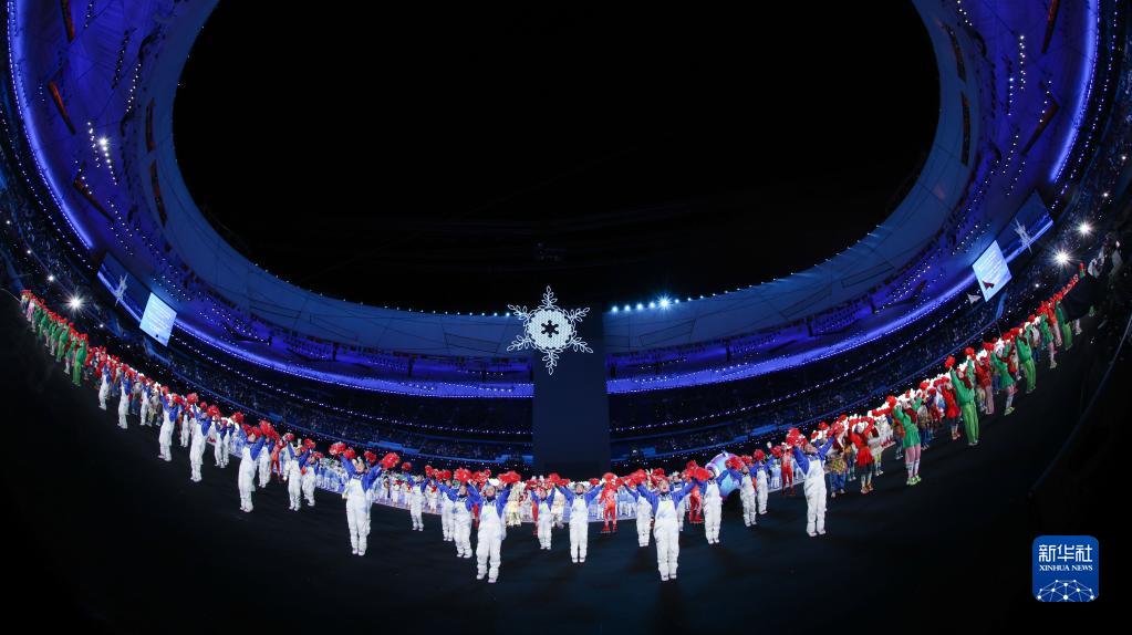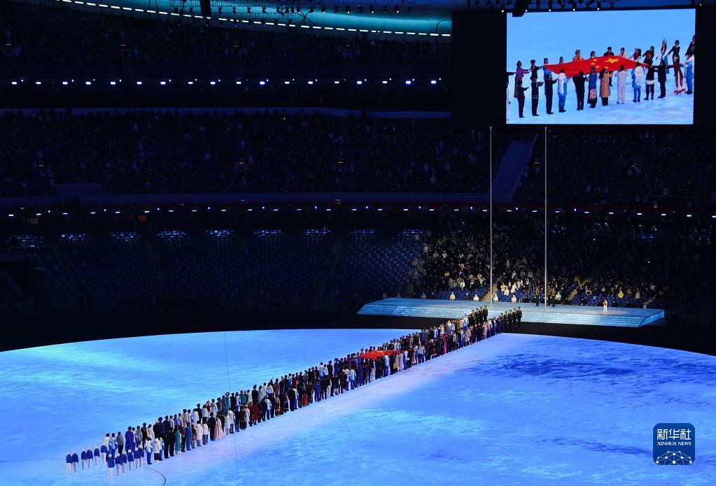 2月4日晚,第二十四届冬季奥林匹克运动会开幕式在北京国家体育场举行。这是中华人民共和国国旗入场。