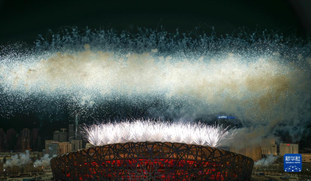 2月4日晚,第二十四届冬季奥林匹克运动会开幕式在北京国家体育场举行。这是焰火表演。