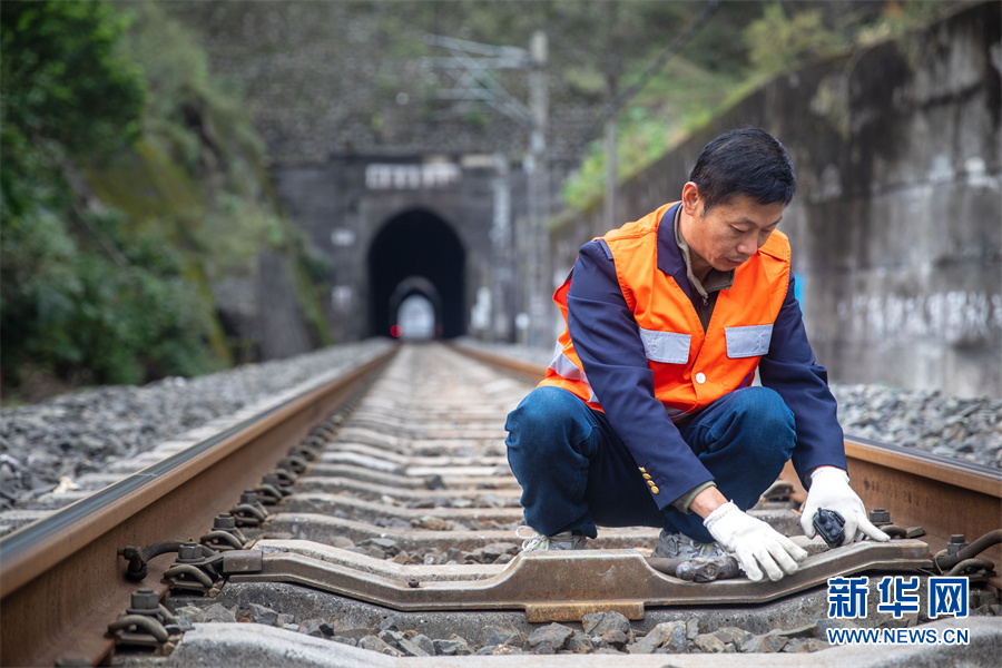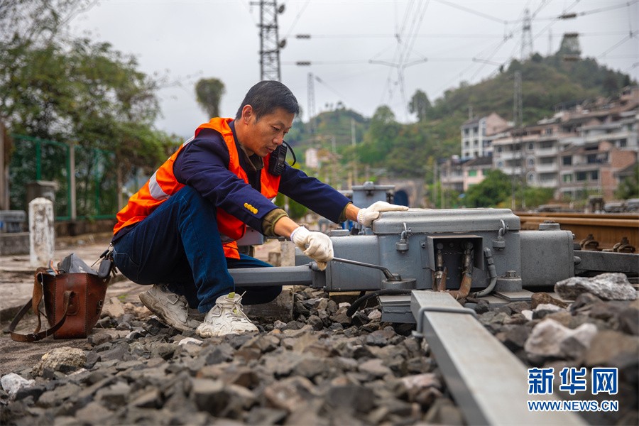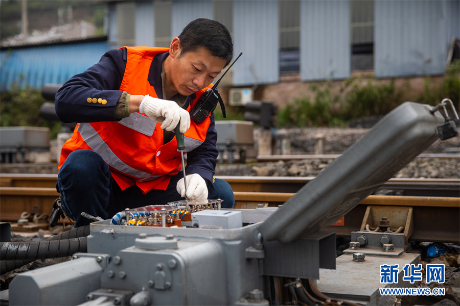 谭海波检查轨道电路。新华网发(曾鸣摄)