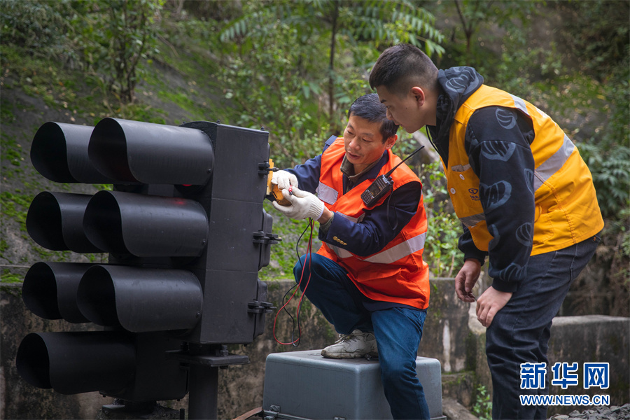 谭海波与同事检查信号机。新华网发(曾鸣摄)