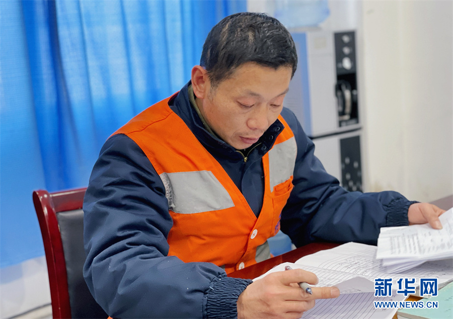 谭海波进行交接班登记。新华网发(曾鸣摄)