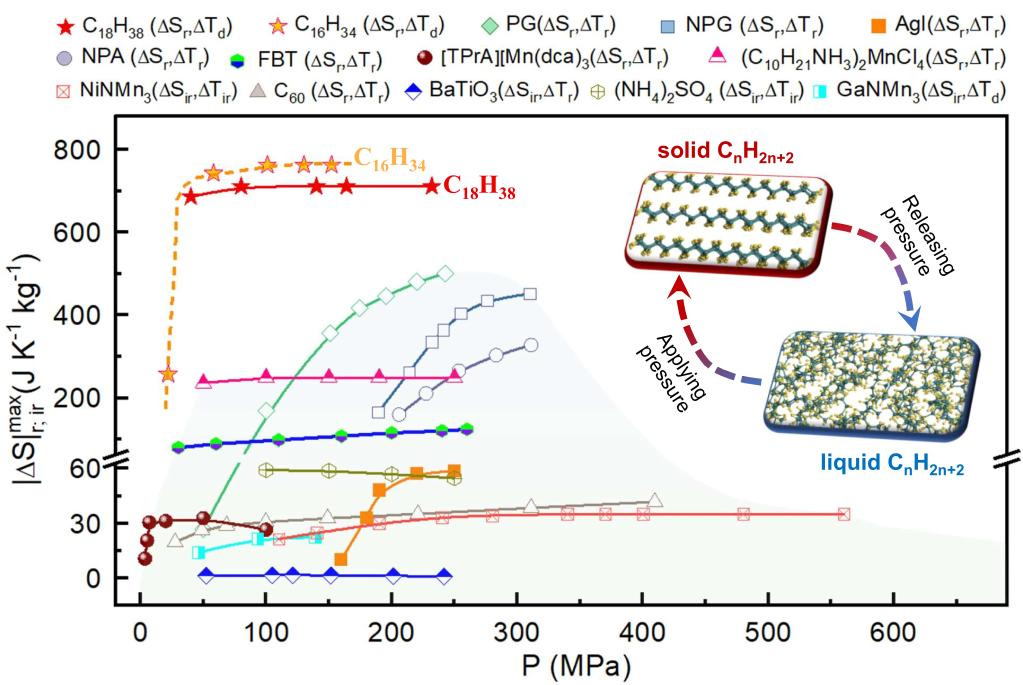此次,固体物理研究所研究团队在正构烷烃中发现了低压力驱动的庞压卡效应。据介绍,正构烷烃的成本低廉,物理化学性能稳定,相变过程不产生有害排放,同时便于制冷设备的小型化,在制冷领域具有广阔应用前景。