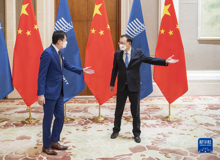 2月5日上午,国务院总理李克强在北京钓鱼台国宾馆会见来华出席北京冬奥会开幕式的世界知识产权组织总干事邓鸿森。新华社记者 李涛 摄