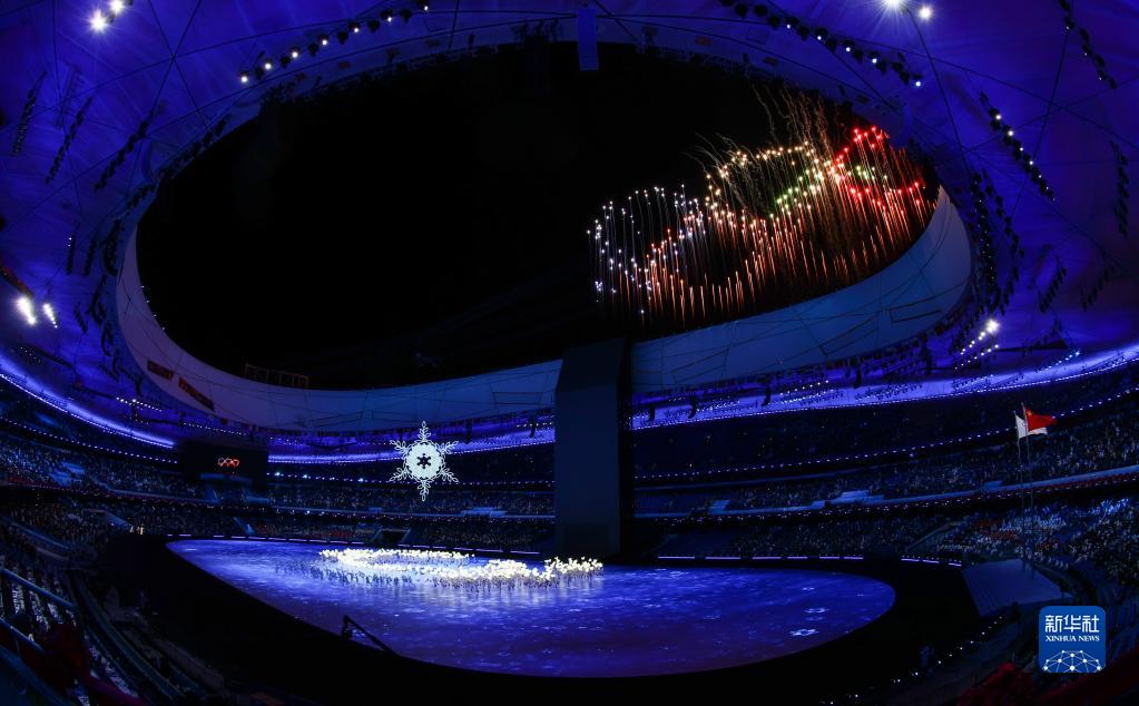 2月4日晚,第二十四届冬季奥林匹克运动会开幕式在北京国家体育场举行。这是主火炬和焰火表演。