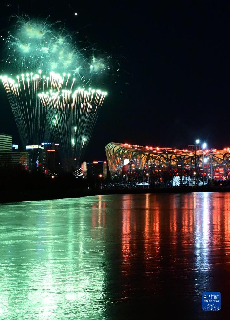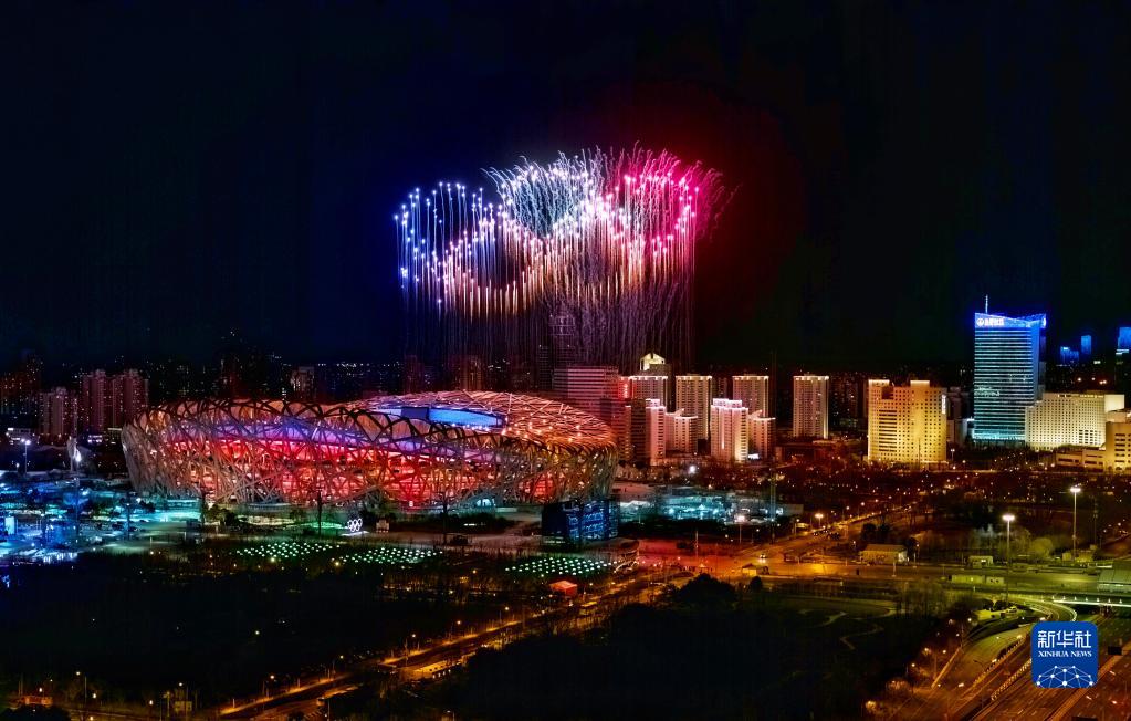 2月4日晚,第二十四届冬季奥林匹克运动会开幕式在北京国家体育场举行。这是焰火表演。
