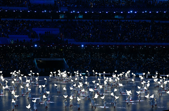 2月4日晚,第二十四届冬季奥林匹克运动会开幕式上的“雪花”环节。新华社记者杜宇摄