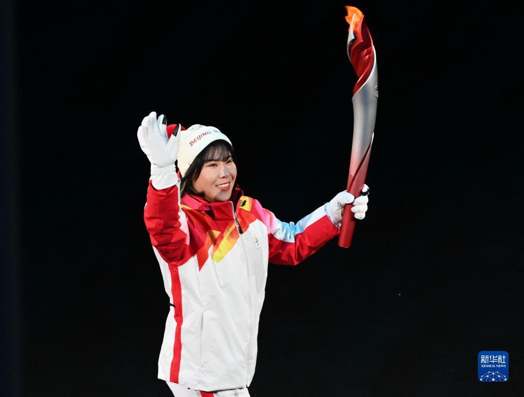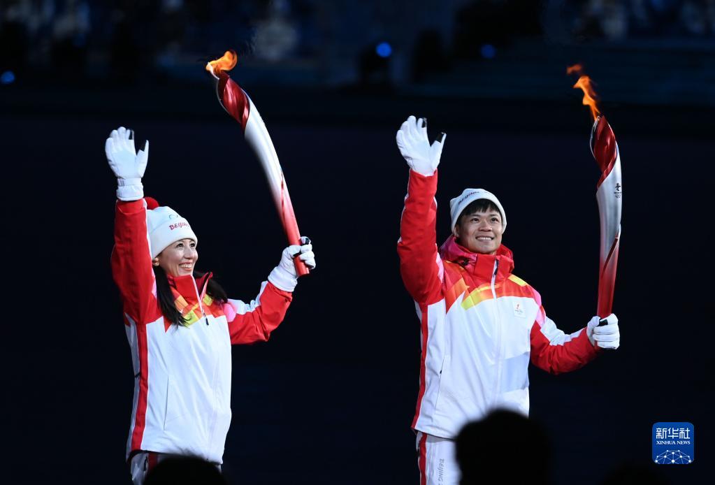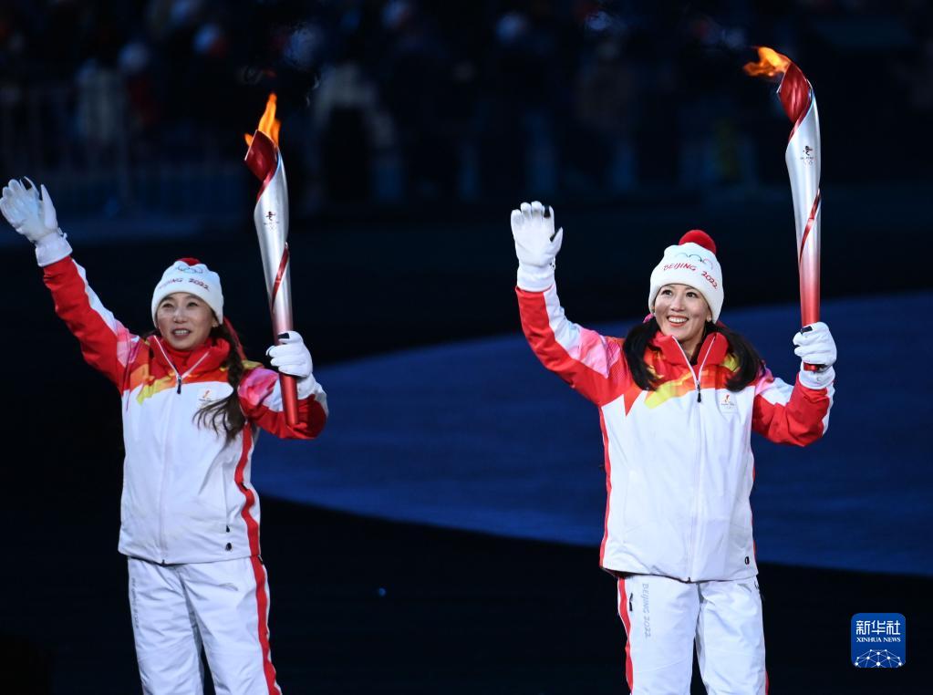 2月4日晚,第二十四届冬季奥林匹克运动会开幕式在北京国家体育场举行。这是最后一棒火炬手迪妮格尔·衣拉木江和赵嘉文。
