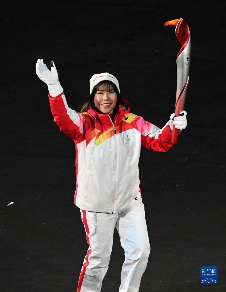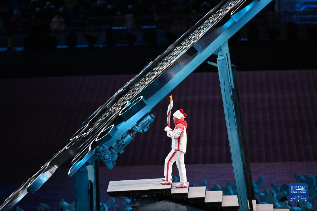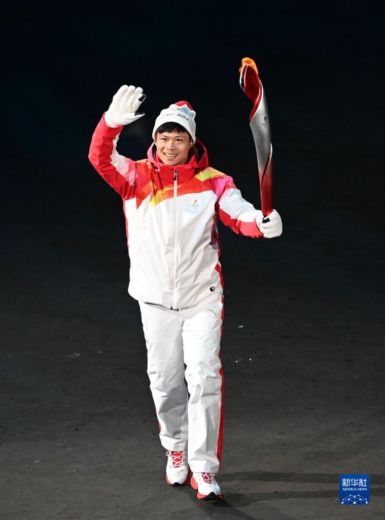 2月4日晚,第二十四届冬季奥林匹克运动会开幕式在北京国家体育场举行。这是火炬手周洋在开幕式上传递火炬。