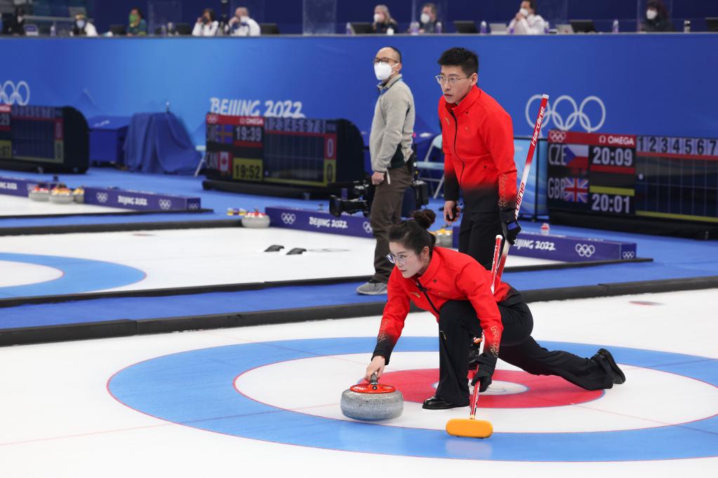 比赛继续在国家游泳中心“冰立方”进行。前三局1:3落后的中国队利用第四局后手局的优势,由范苏圆执行最后一投。面对美国队2分牵制的局面,范苏圆虽投壶力量稍轻,可凌智全程奋力擦冰,最终将对手两壶清开,为中国队得到2分。中国组合在这一投的默契配合,让现场数百名观众爆发出热烈掌声。