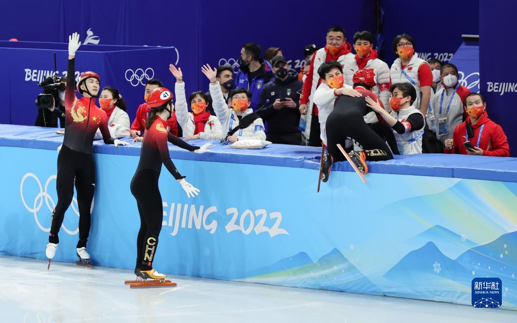 当日,在首都体育馆举行的北京2022年冬奥会短道速滑项目混合团体接力决赛中,中国队夺得冠军。
