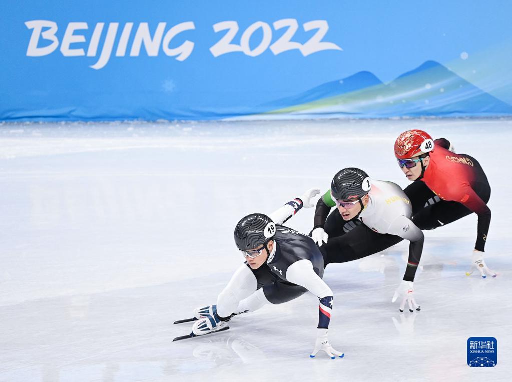 2月5日,中国队选手任子威(左二)与队友武大靖(右二)在比赛中。