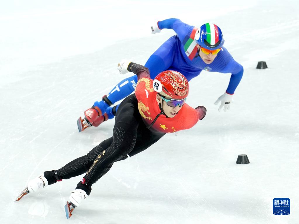 2月5日,中国队选手武大靖(前左)冲向终点。