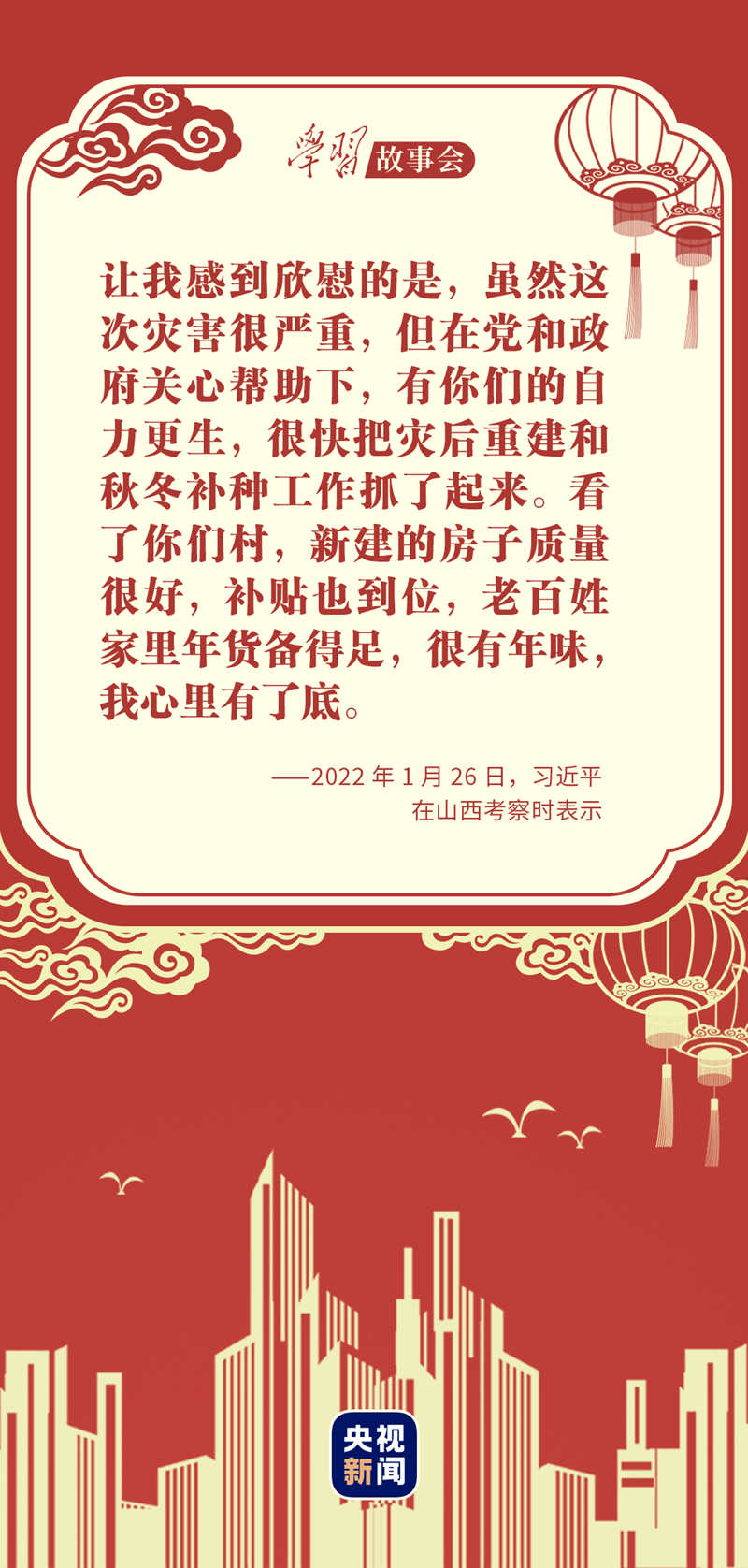总书记亲切询问他们重建住房质量好不好、年货置办齐了没有、还有什么困难。师红兵告诉总书记,这房子又结实又暖和,一家人可以踏踏实实过年了,衷心感谢党和政府。