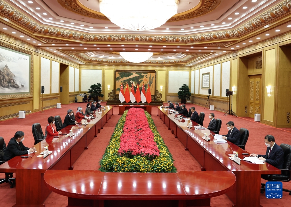 习近平强调,新加坡从中国改革开放之初就深度参与中国发展进程,当前中国正加快构建新发展格局,双方应该优势互补,合作共赢。欢迎新方依托同中国省市建立的地方合作机制,在中国经济双循环中发挥更大作用。双方要深化绿色发展合作,加强数字经济、智慧城市、科技创新等领域合作,培育合作新增长点,为各自发展注入新动能。要树立高质量共建“一带一路”合作标杆,提升陆海新通道对地区产业链供应链的支撑作用。高水平实施《区域全面经济伙伴关系协定》,共同推动区域一体化进程。双方应该共同推动全球发展倡议落地,维护公平正义,体现责任担当。