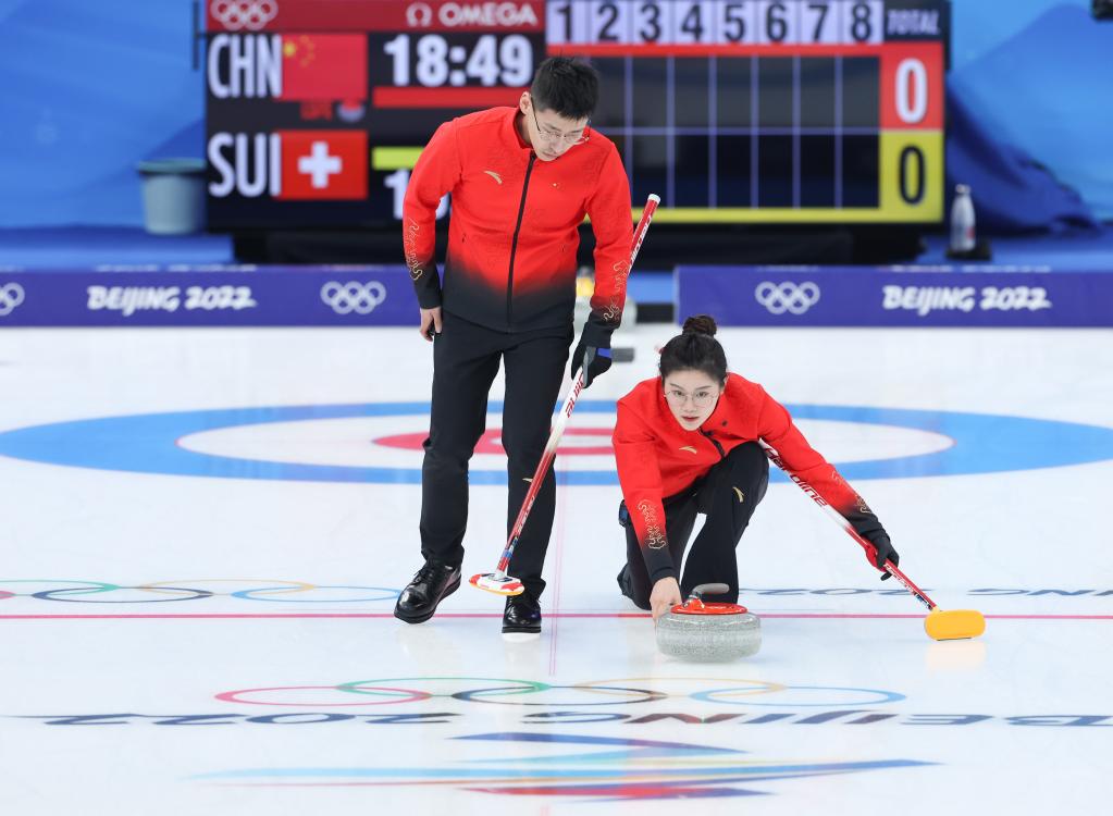 2月2日,中国队选手凌智(左)和范苏圆在比赛中。新华社记者 程婷婷 摄