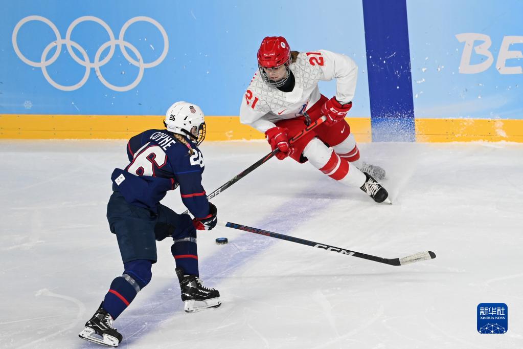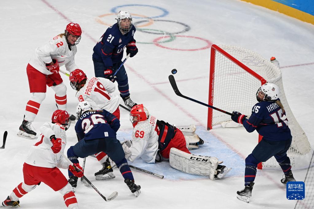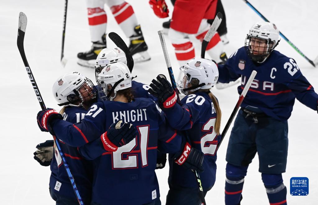 当日,在五棵松体育中心举行的北京2022年冬奥会女子冰球小组赛中,美国队以5比0战胜俄罗斯奥委会队。