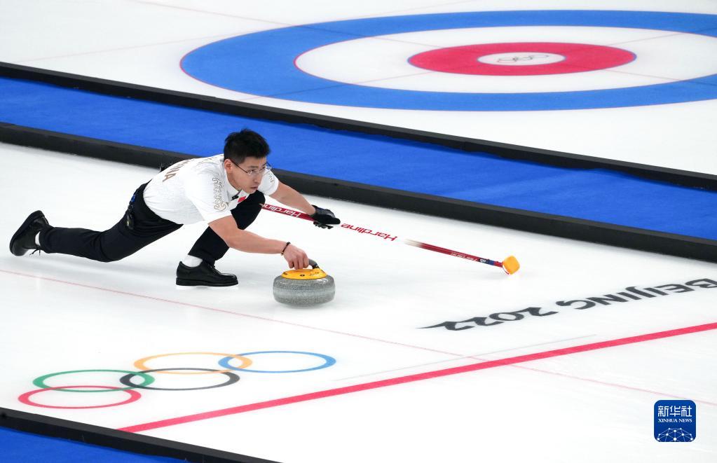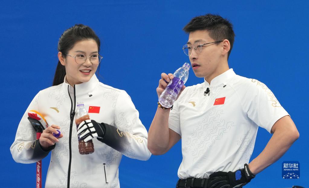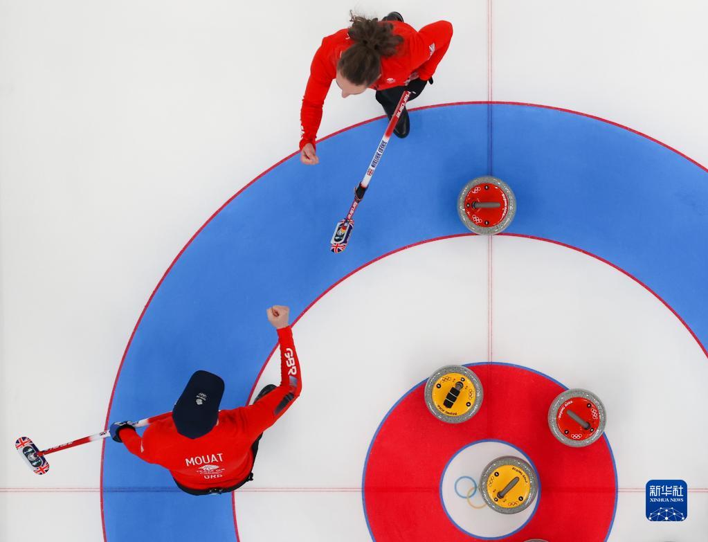 当日,在北京国家游泳中心“冰立方”举行的北京2022年冬奥会冰壶混双循环赛比赛中,中国队以5比6不敌英国队。