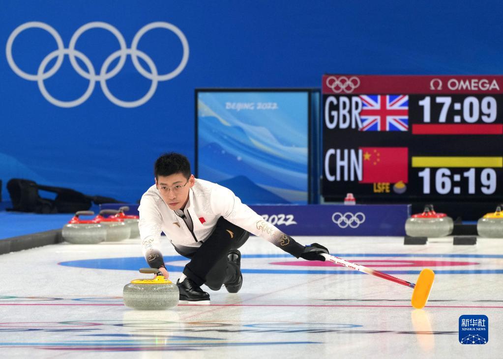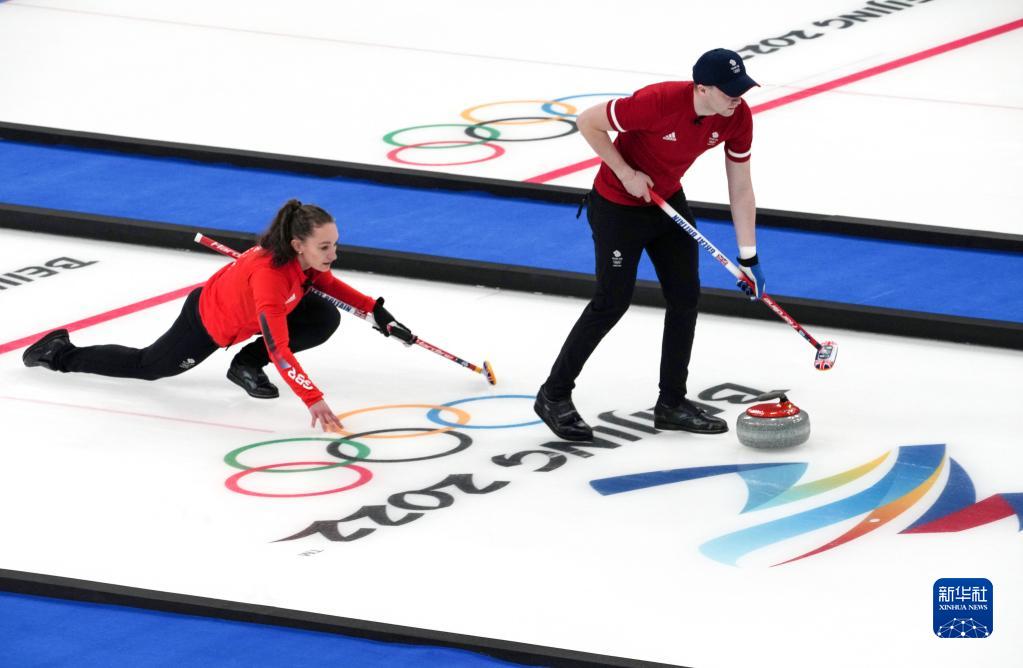 当日,在北京国家游泳中心“冰立方”举行的北京2022年冬奥会冰壶混双循环赛比赛中,中国队以5比6不敌英国队。