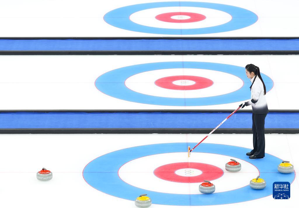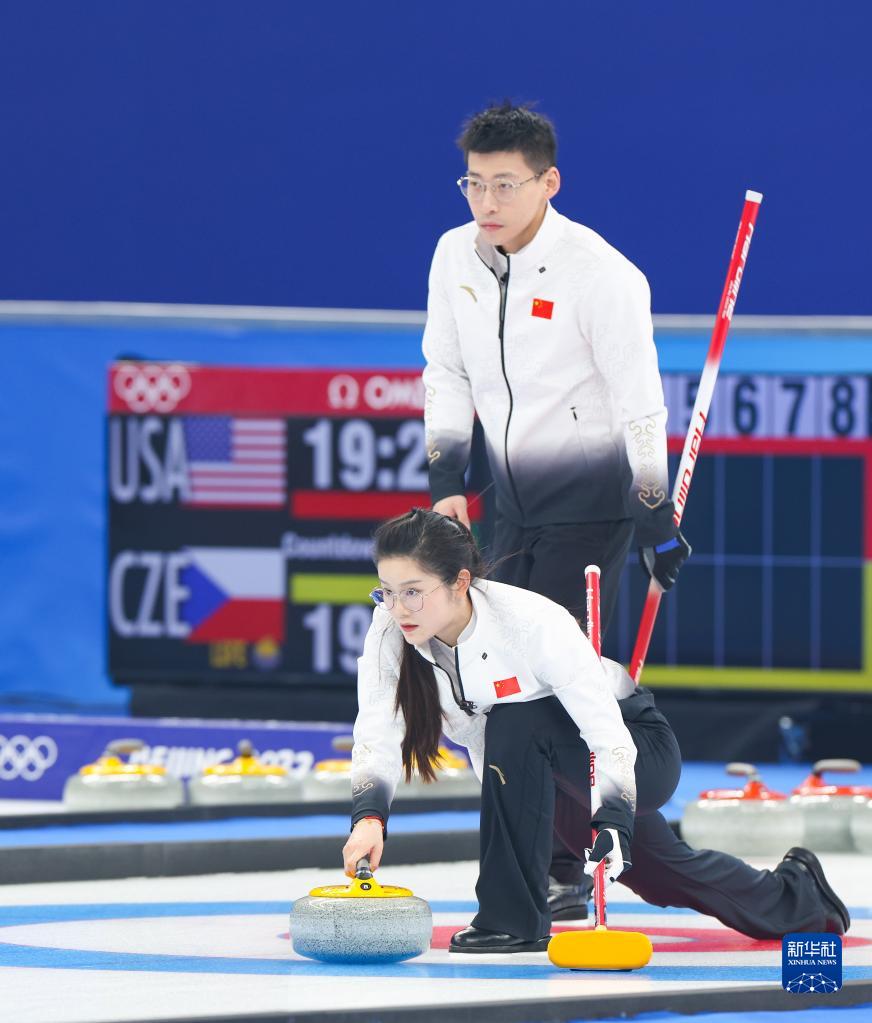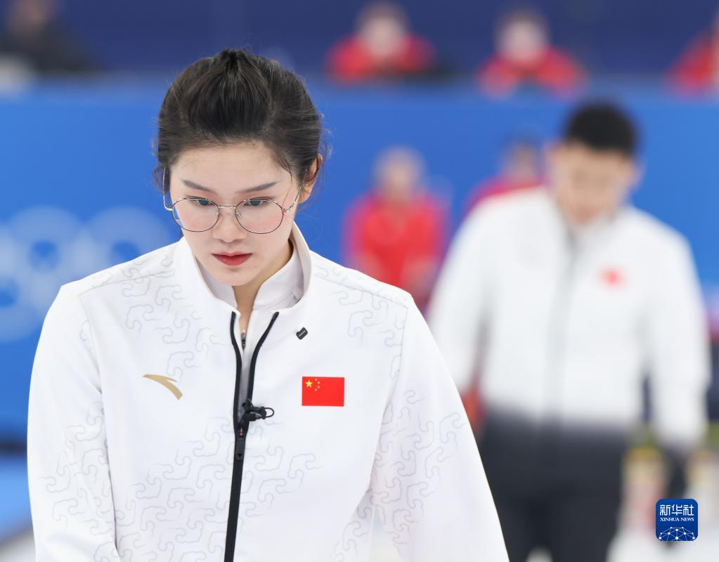 当日,在北京国家游泳中心“冰立方”举行的北京2022年冬奥会冰壶混双循环赛比赛中,中国队以5比6不敌英国队。