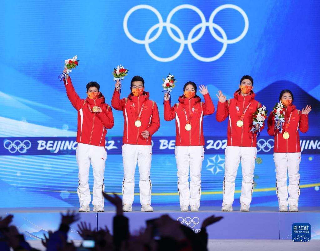 当日,北京2022年冬奥会短道速滑混合团体接力奖牌颁发仪式在北京赛区颁奖广场举行。