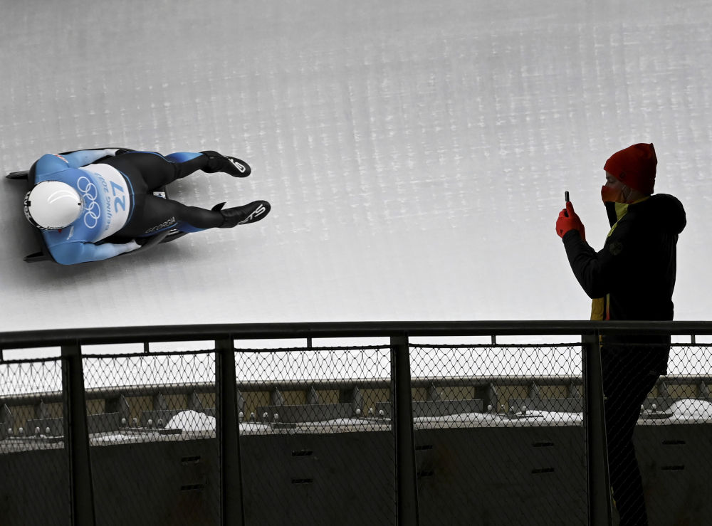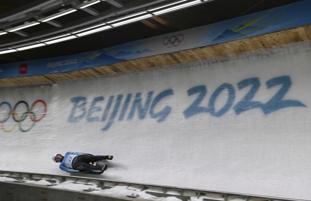 萨巴·库马里塔什威利在北京冬奥会男子单人雪橇比赛中(2022年2月5日摄)。