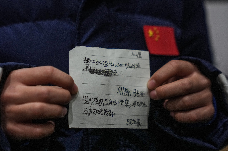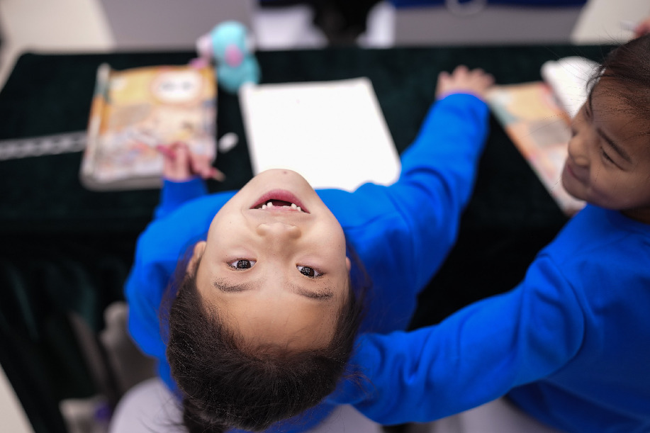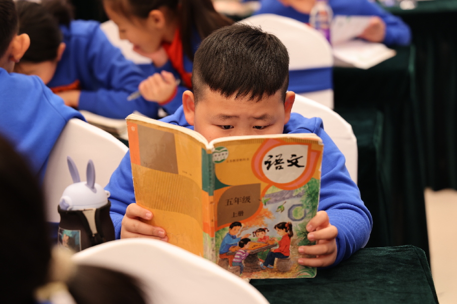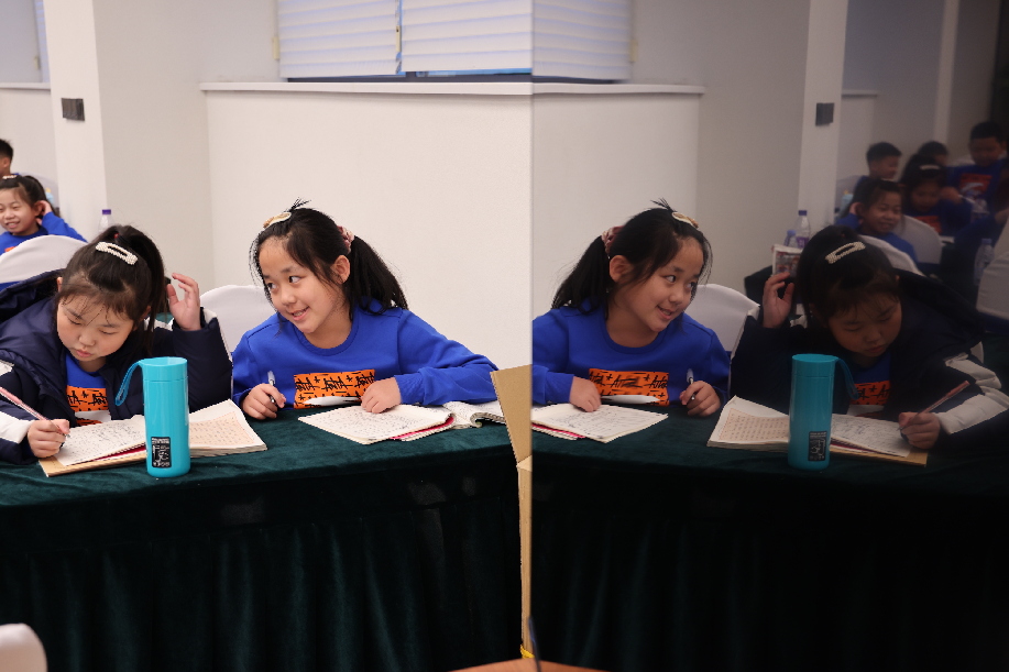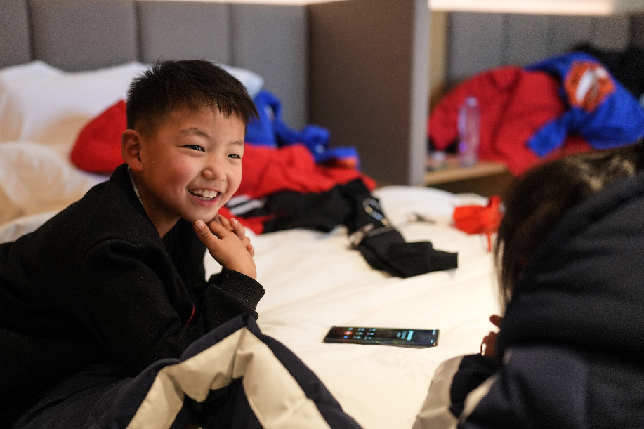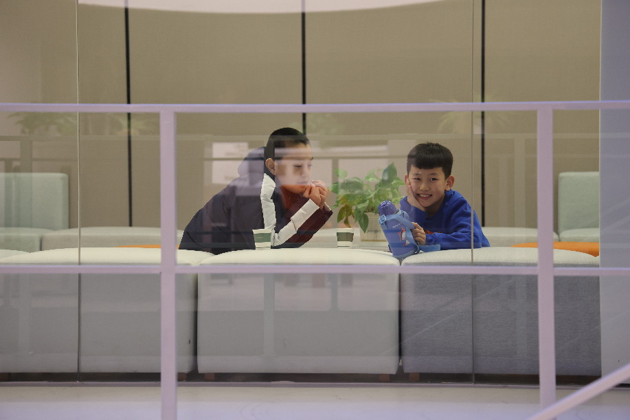 ⬆️1月17日,马兰花儿童合唱团的梁佑麟和顾站豪(右)在训练时休息。