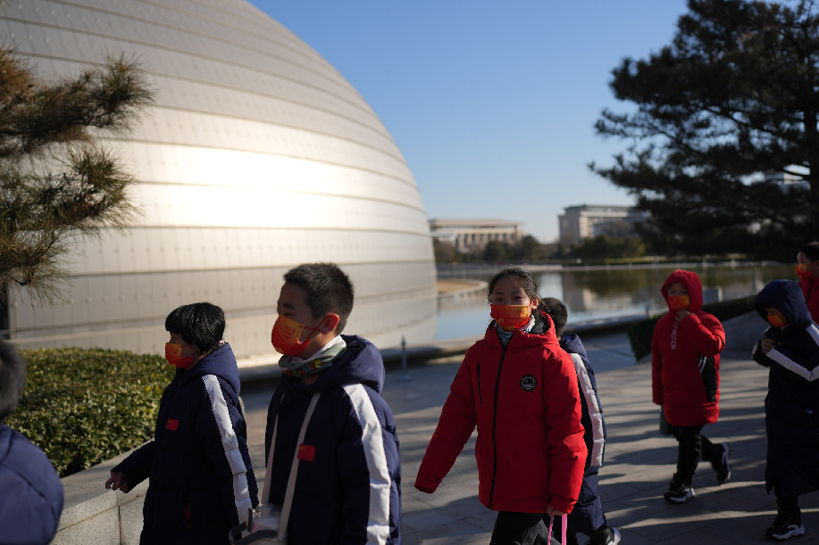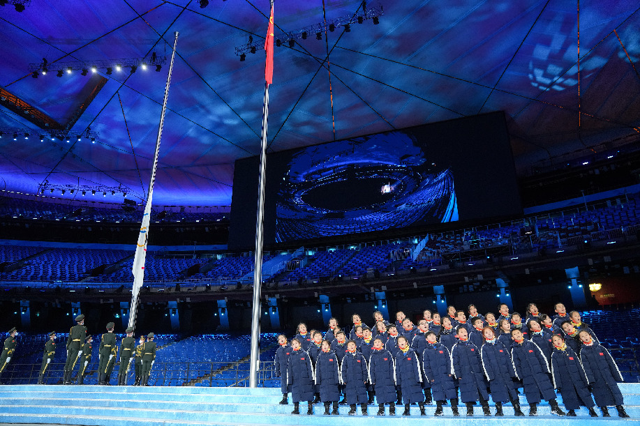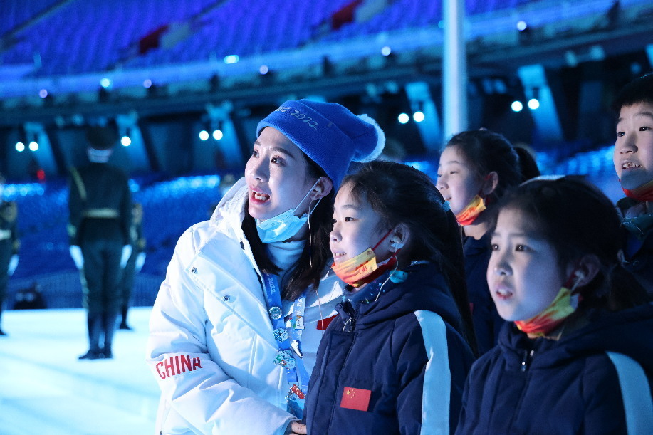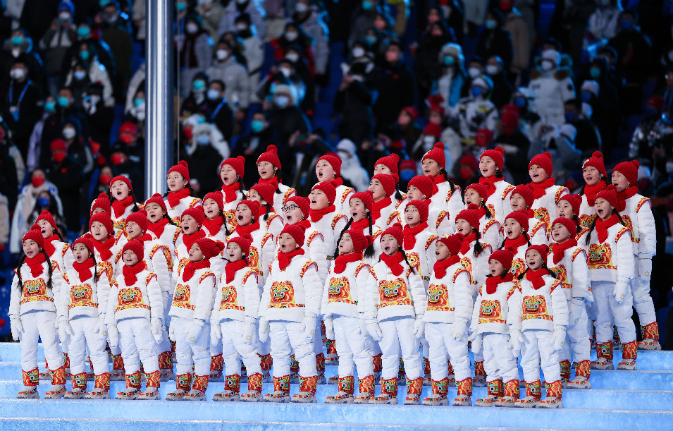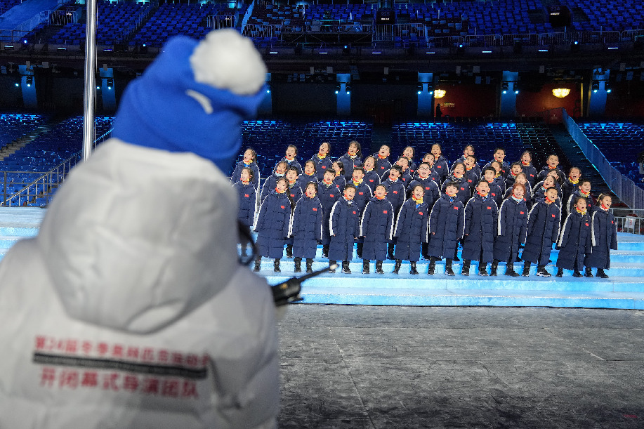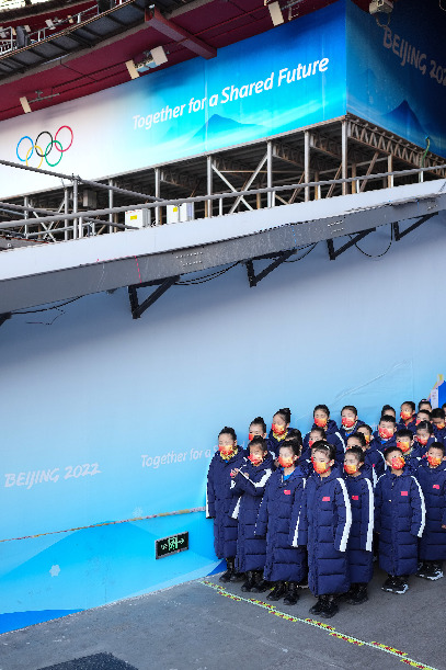 ⬆️1月26日,在国家体育场(鸟巢),马兰花儿童合唱团的孩子们在场上彩排。