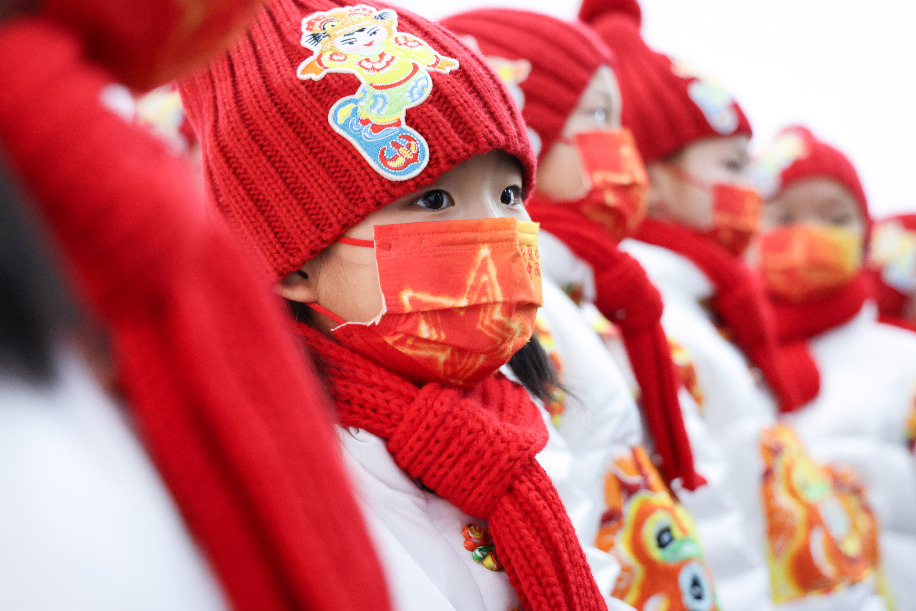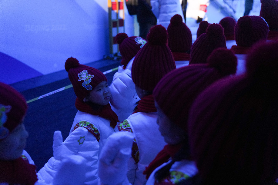 ⬆️1月27日,在国家体育场(鸟巢),马兰花儿童合唱团的孩子们准备上场。