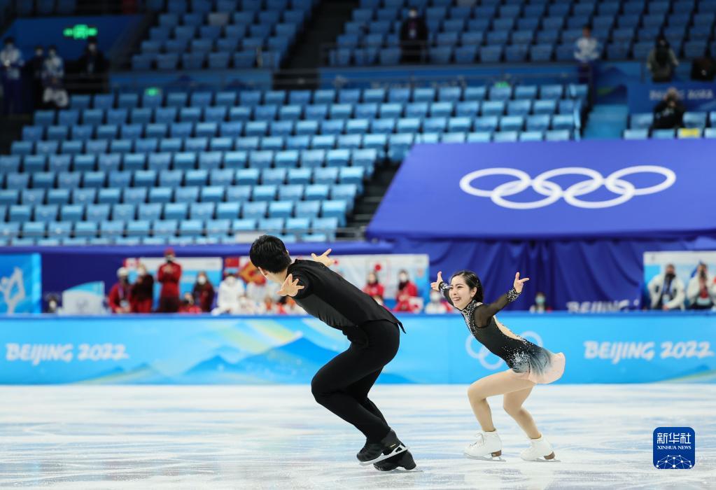 当日,北京2022年冬奥会花样滑冰团体赛双人滑自由滑比赛在首都体育馆举行。