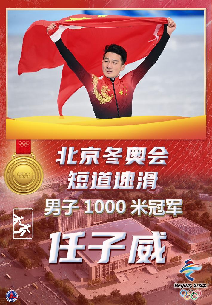 在刚刚结束的北京冬奥会短道速滑男子1000米决赛中,中国选手任子威获得金牌。