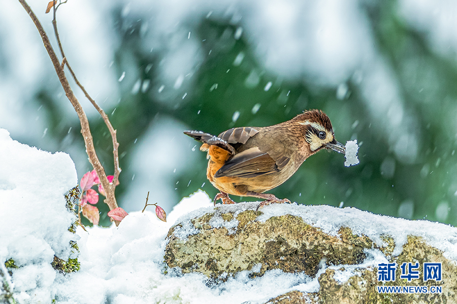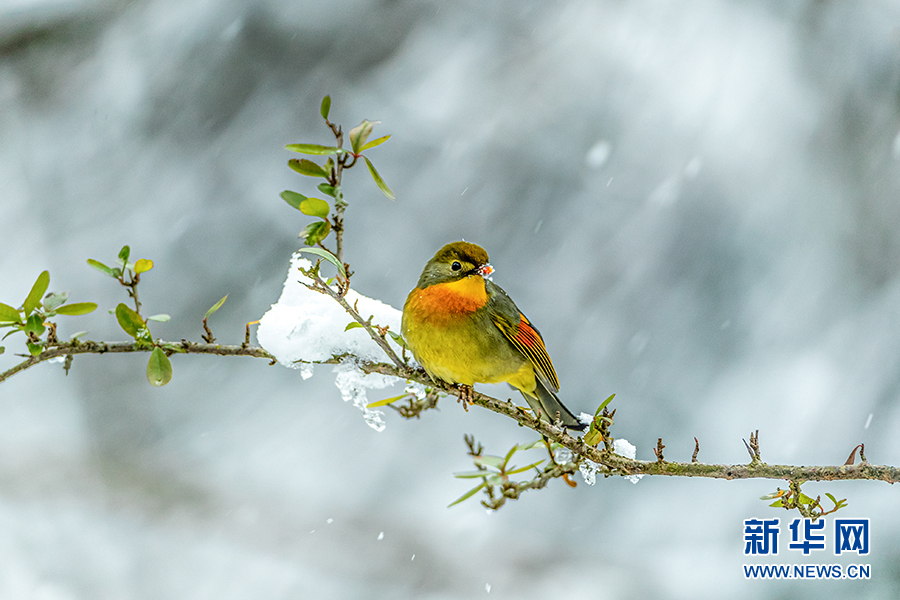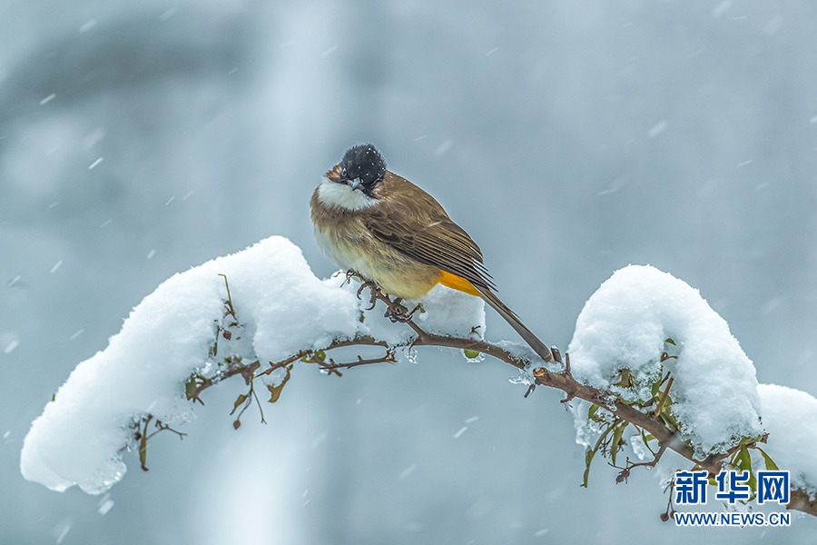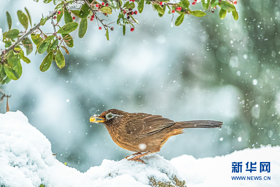 立春以后,重庆市南川区800米以上高海拔地区连降瑞雪,大拟啄木鸟、相思鸟、黑头奇鹛等鸟儿不惧严寒,或傲立枝头迎风嬉戏,或踏雪散步觅食打斗,宛若美丽的雪中小精灵。新华网发(瞿明斌 摄)