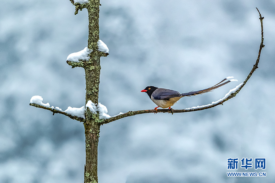 红嘴蓝鹊。新华网发(瞿明斌 摄)