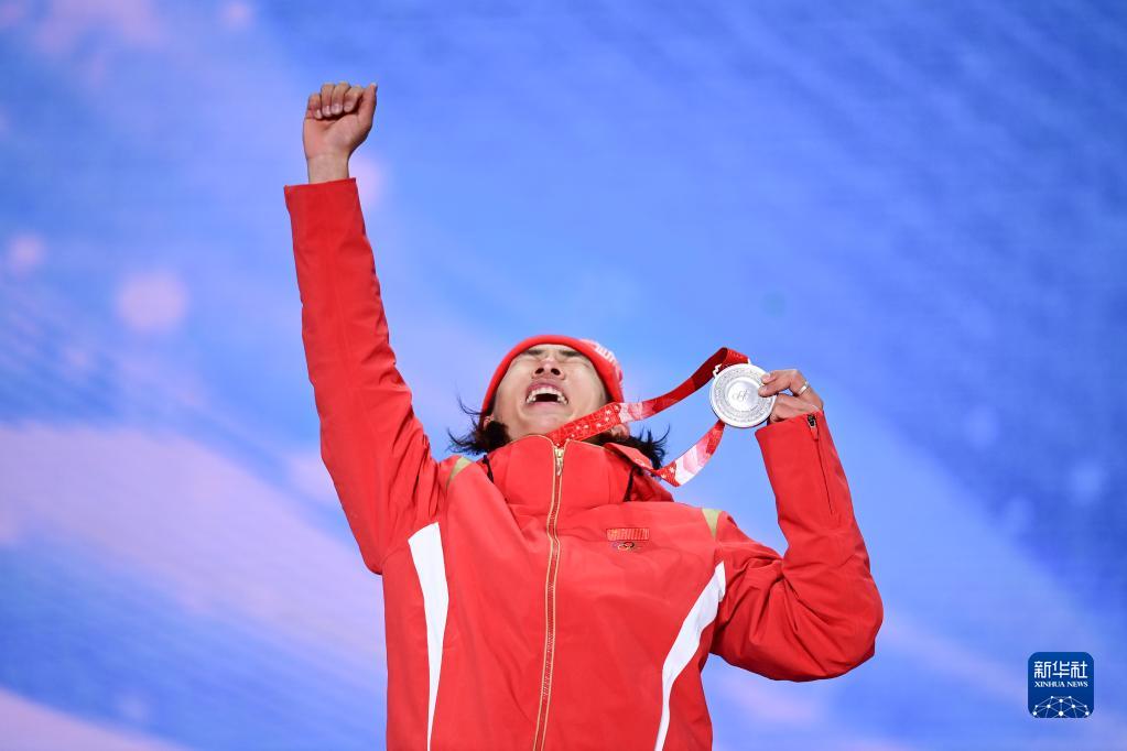 2月7日,亚军中国选手苏翊鸣在奖牌颁发仪式上。