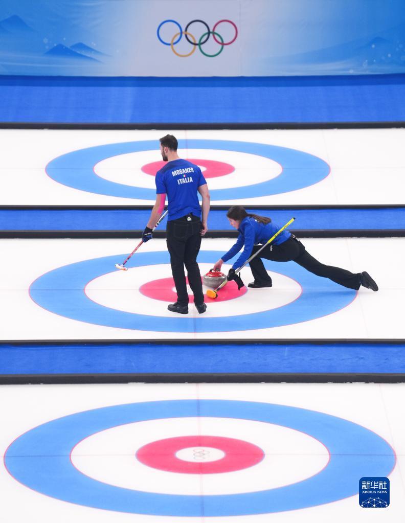 当日,在北京国家游泳中心“冰立方”举行的北京2022年冬奥会冰壶混双半决赛中,意大利队战胜瑞典队晋级决赛。