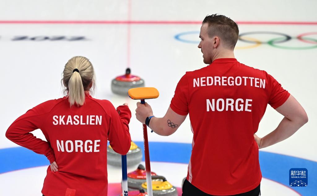 当日,在北京国家游泳中心“冰立方”举行的北京2022年冬奥会冰壶混双半决赛中,挪威队战胜英国队晋级决赛。