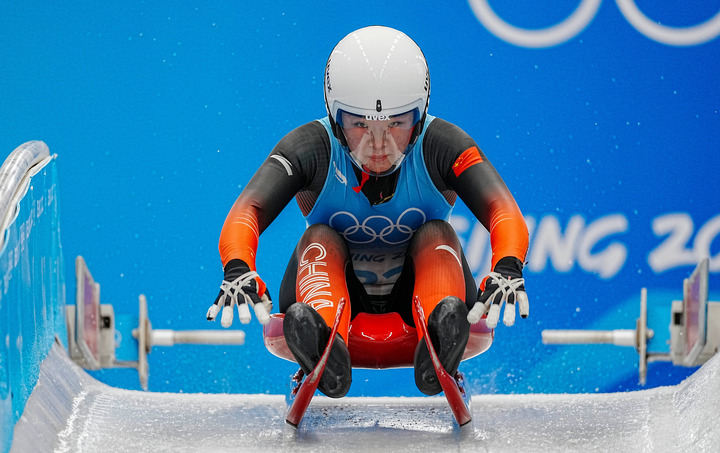 2月7日,中国选手王沛宣在北京2022年冬奥会女子单人雪橇比赛中。新华社记者孙非摄