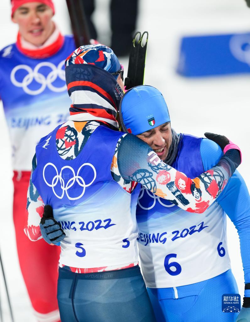 2月8日,意大利选手费代里科·佩莱格里诺(右)在比赛后。