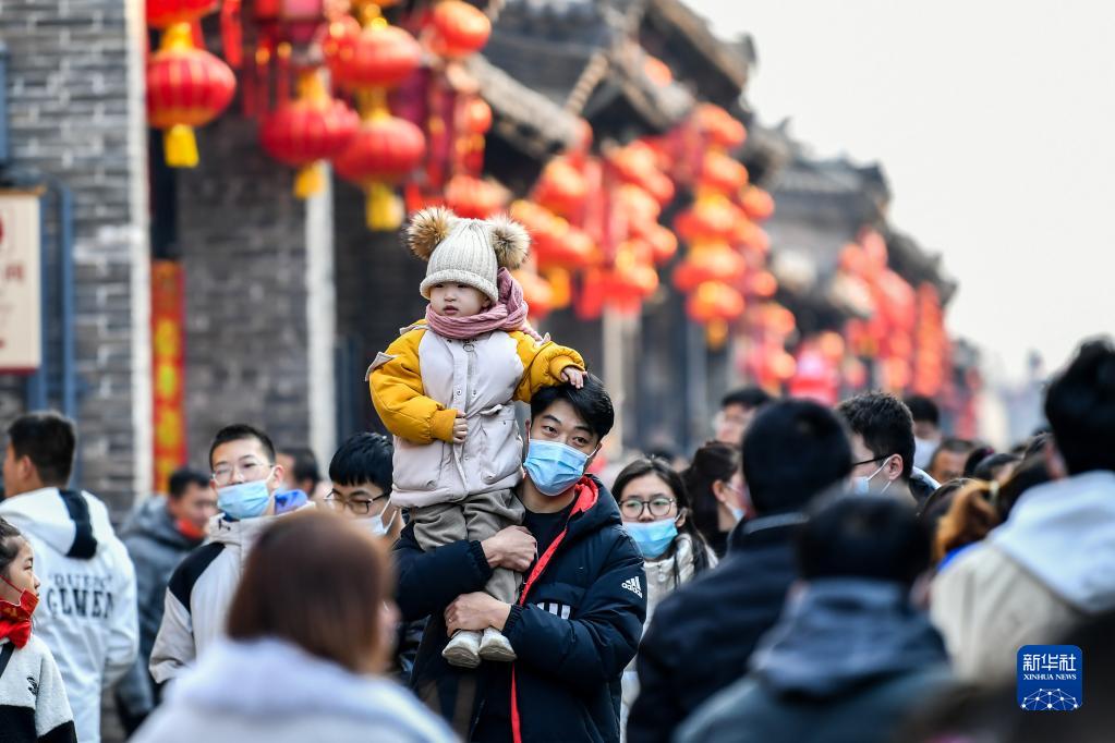 2月8日,游客在平遥古城内参观。新华社记者 曹阳 摄