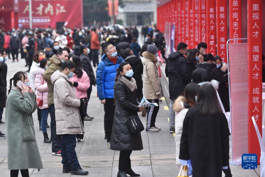 2月9日,求职者在四川省内江市新春人才招聘活动中了解岗位信息。