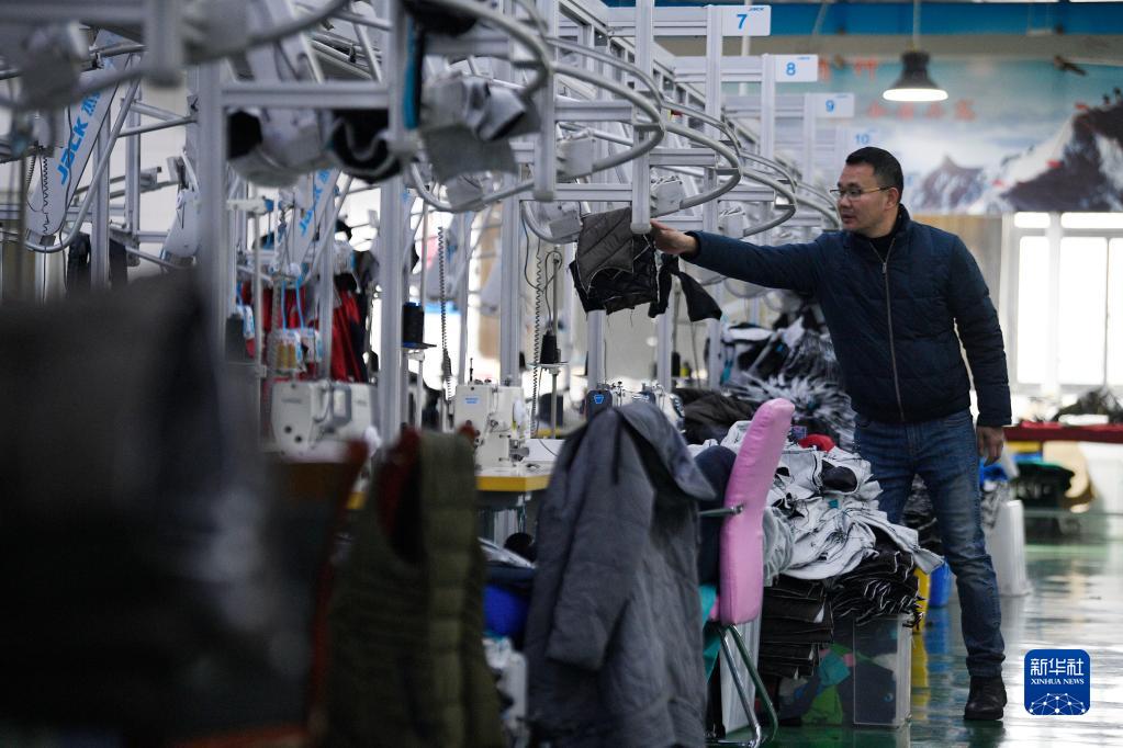 许上等在宁夏闽宁镇扶贫车间富贵兰制衣厂进行安全巡查(1月27日摄)。新华社记者 王鹏 摄