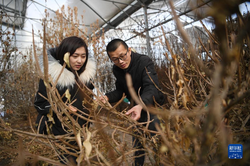 郑国华(右)在宁夏泾源县查看冬季植物生长情况(1月29日摄)。新华社记者 王鹏 摄