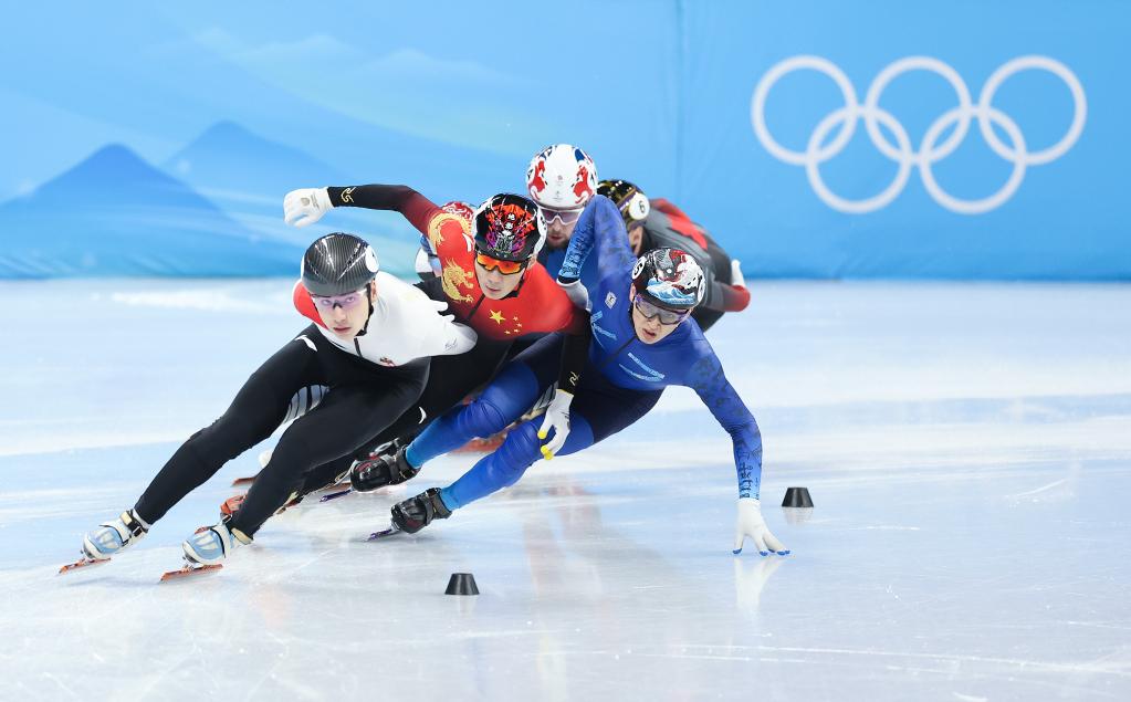 2月9日,中国选手任子威(左二)在比赛中。新华社记者兰红光摄