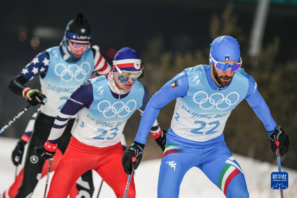 2月9日,意大利选手拉法埃莱·布齐(右一)在越野滑雪比赛中。