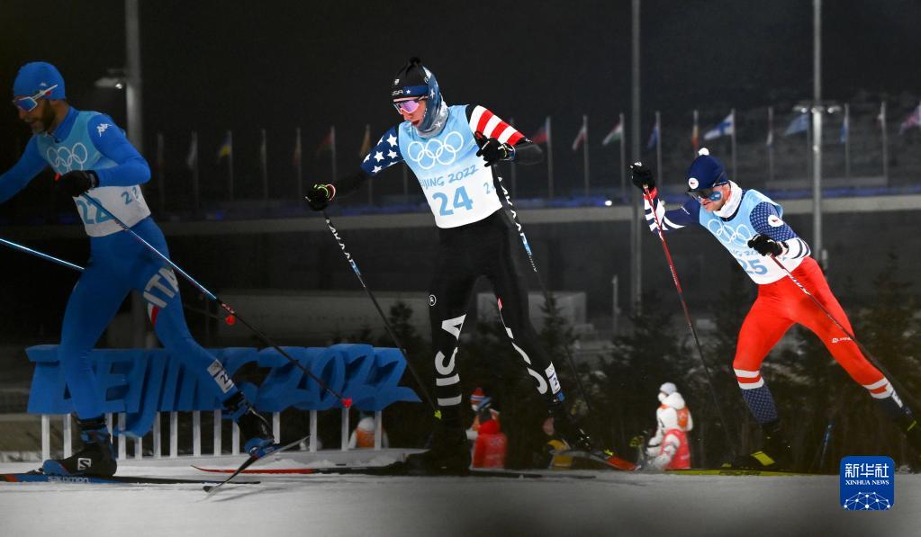 2月9日,美国选手贾里德·舒梅特(中)在越野滑雪比赛中。
