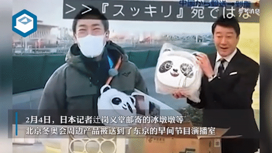 日本记者连线日本演播室现场开箱“冰墩墩”