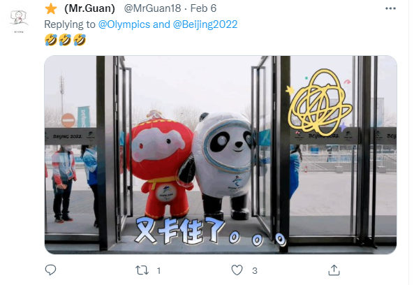 译文:(冰墩墩)可爱却过不去门